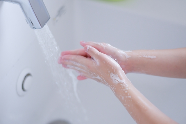 ・手洗いとうがい:ウイルスは手を介して感染することが多いため石鹸を使い流水で洗う。