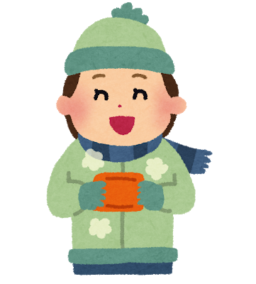外出時は、暖かい上着、マフラー、出袋、帽子などで防寒対策をしっかりしましょう。特に首、手首、足首などを冷やさないように気を付けましょう。